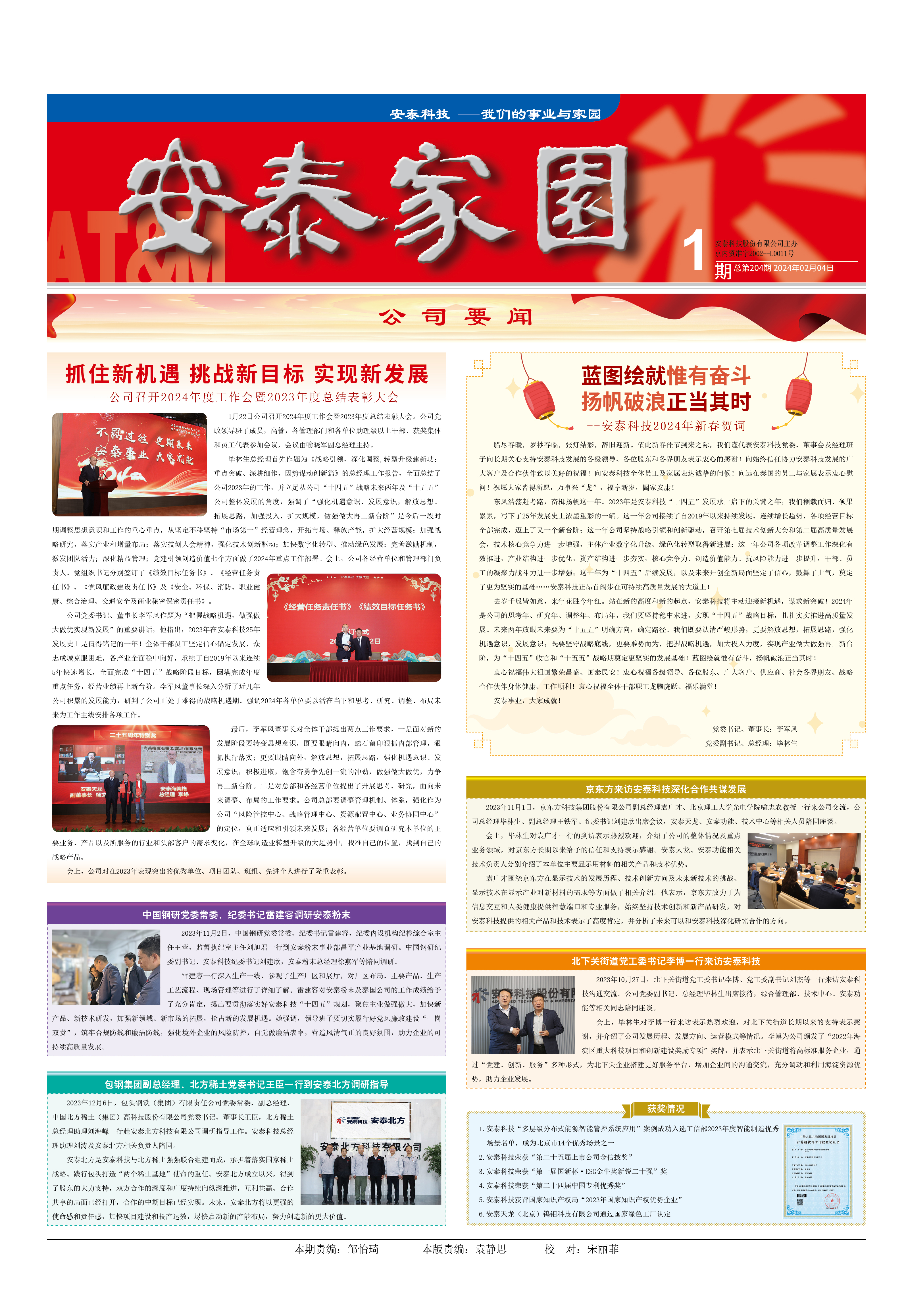 1月22日公司召開2024年度工作會暨2023年度總結表彰大會。公司黨政領導班子成員,高管,各管理部門和各單位助理級以上干部、獲獎集體和員工代表參加會議,會議由喻曉軍副總經理主持。